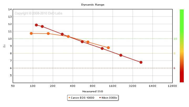 1000D: ISO400, (w tym punkcie SNR 32,2dB, DR 10.3EV oraz 19.5bita)
