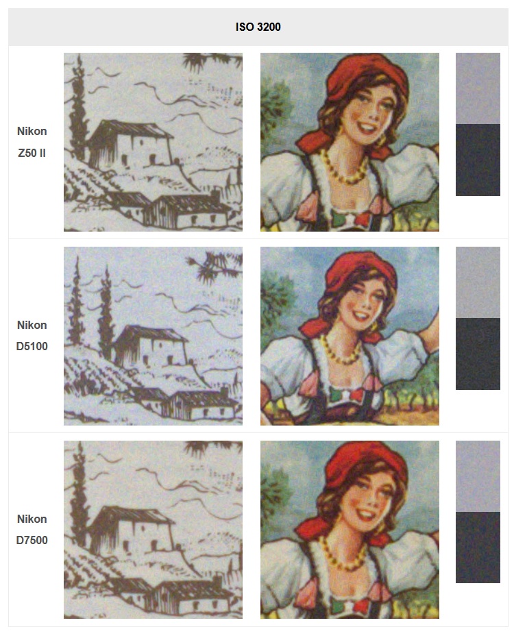 W teście Z50 II możesz porównać wycinki tej samej scenki w tych samych warunkach: