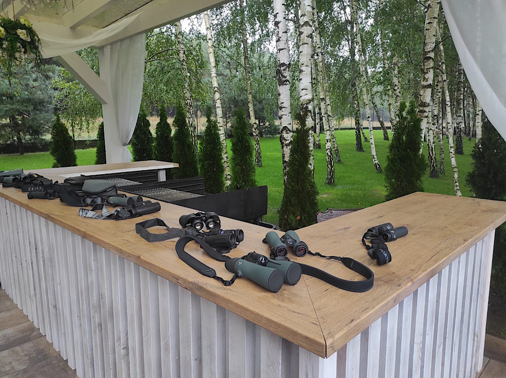 Na spotkaniu miałem okazję popatrzeć przez Swarovski Habicht 7x42, Leica Ultravid hd+ 7x42, Zeiss fl 7x42. Mogłem je porównać do dachowej Sky Rover Banner Cloud 6x32. Pod koniec mojej wizyty na krótko mogłem też spojrzeć przez Nikona EDG 7x42. Przy okazji było też parę innych ciekawych lornetek z najwyższej półki w konfiguracjach 8x42, 10x42 i innych, oczywiście też skorzystałem z możliwości popatrzenia przez i na nie. Zacząłem od vintage Zeissa West 8x50, którego obraz był zaskakująco dobry i relaksujący. Niestety kiedy sięgnąłem po nowoczesne lornetki szybko wrażenie wyblakło, bo mimo wszystko inna technologia współczesnych powłok miażdży te skądinąd piękne stare lornetki dużo większym kontrastem, jasnością i transparentnością obrazu.