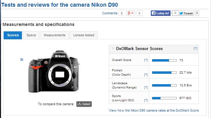 Przykłady? Bardzo proszę - co prawda nie znalazłem D90 na dpreview.com , ale zatąpiłem go gorszym D5000z tą samą 12 Mpix ale trochę gorzej oprogramowaną matrycą (różnica 100 ISO podobnie jak między 60D a 650D - bez urazy).